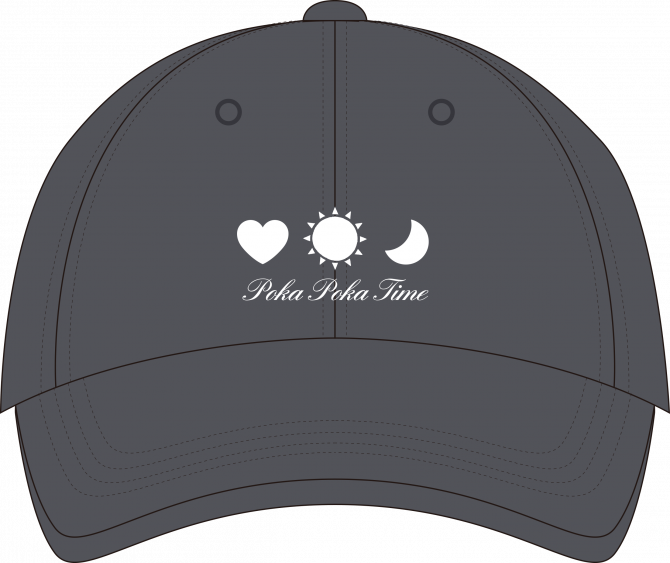 「太陽」「月」「ハート」など番組モチーフのデザインと番組名がさりげなくあしらわれたオリジナルデザインのローキャップで、本体色はデニムブルーです。